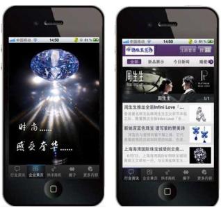珠宝首饰APP概述珠宝首饰APP是移动珠宝首饰产品展示、销售平台,为用户提供行业资讯、供求商机、企业最新动态、展会展览等等,采用了最先进的3G手机应用软件开发技术,让不同地区的用户,都可以更加直观的了解到最新的珠宝款式设计以及详细介绍。