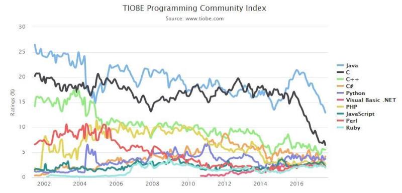 TIOBE 2017 8月编程语言排行榜 后院“硝烟四起”